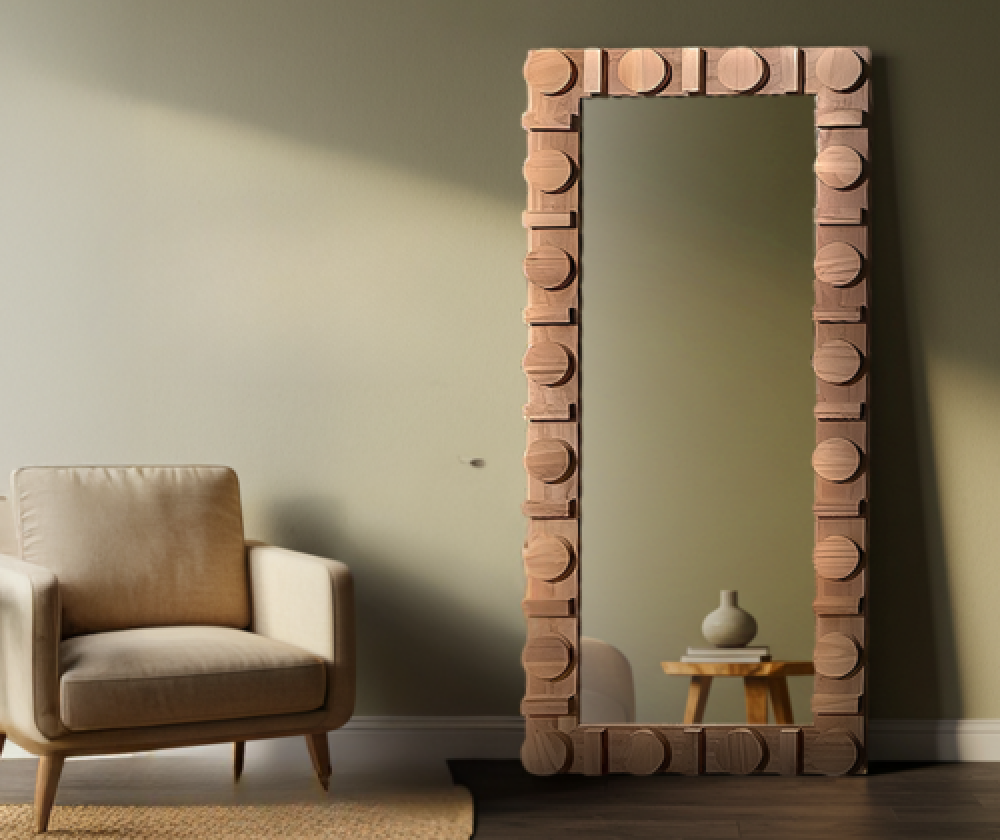 - مرايا طويلة خشب بتصميم عصري متوازن يناسب أنماط الديكورات الحديثة